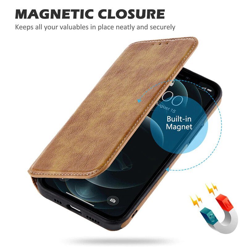 Business Style Premium RFID Blocking PU Leather Magnetic Wallet Flip Case for iPhone 13 Pro Max