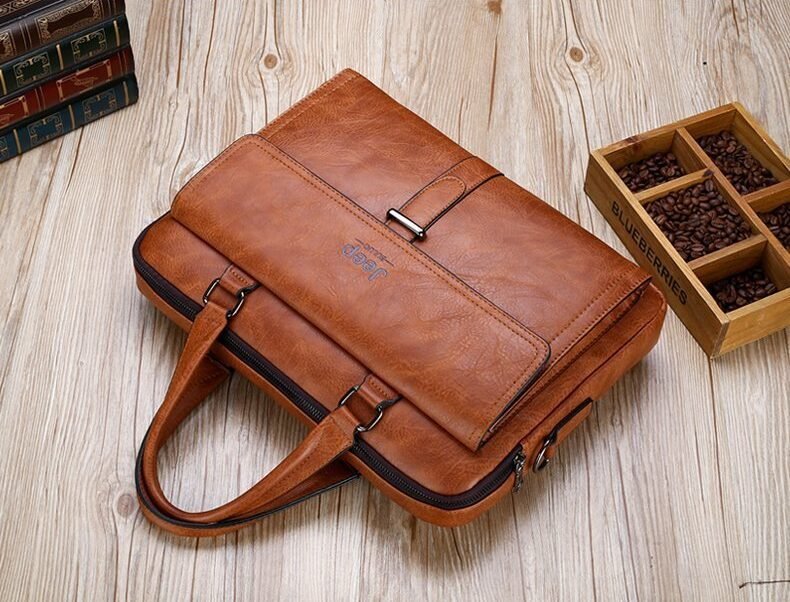 Leather pouch made from high quality materials which fits work with multiple pockets and laptop fits