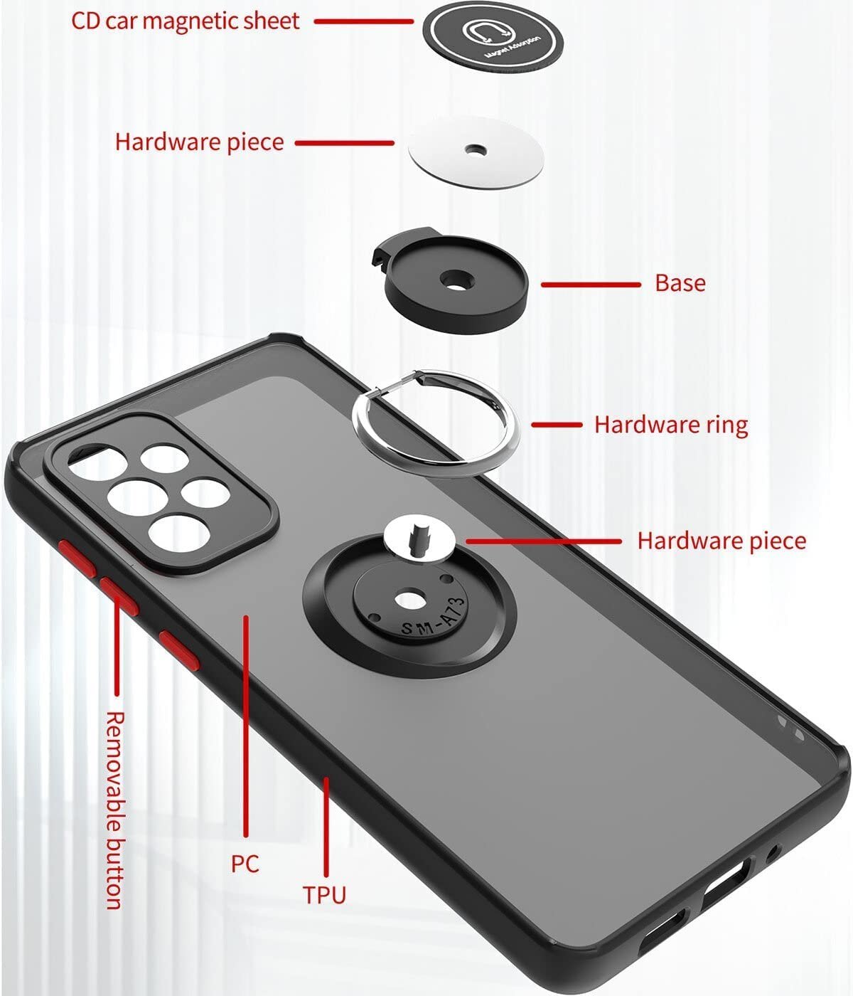 Samsung Galaxy A72/A73 Shockproof Frosted Matte Case With Ring Holder